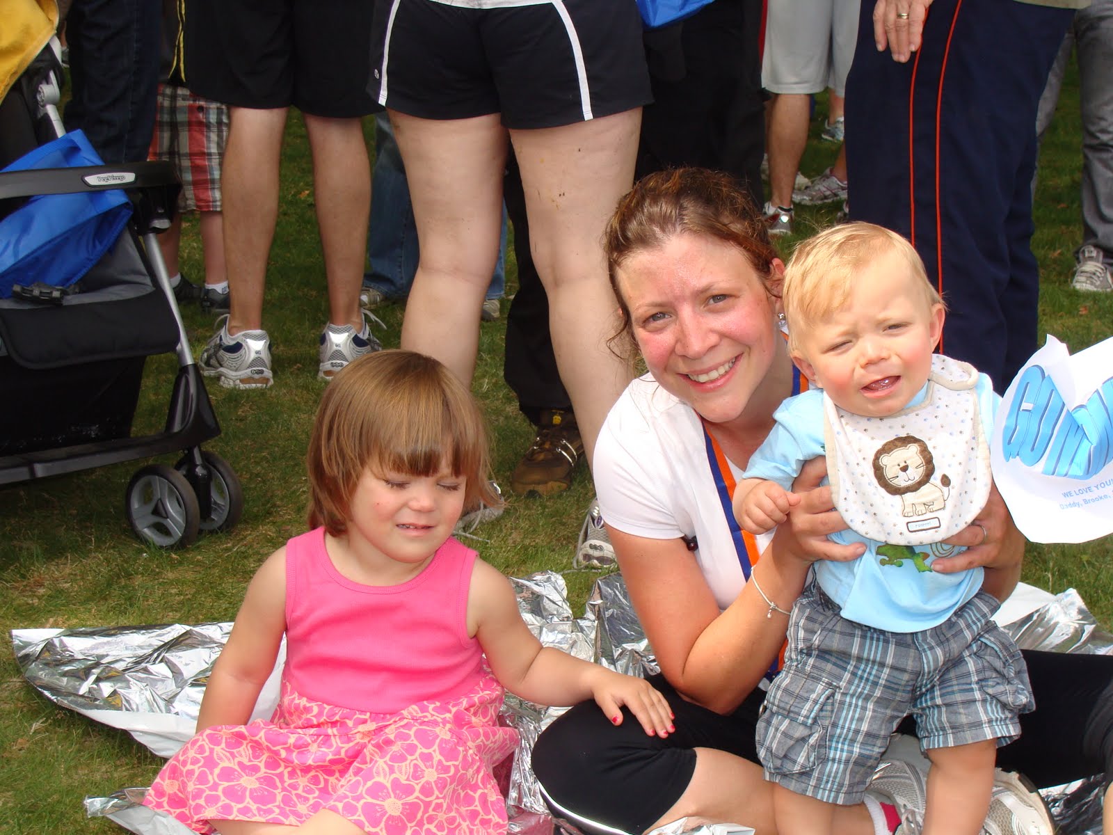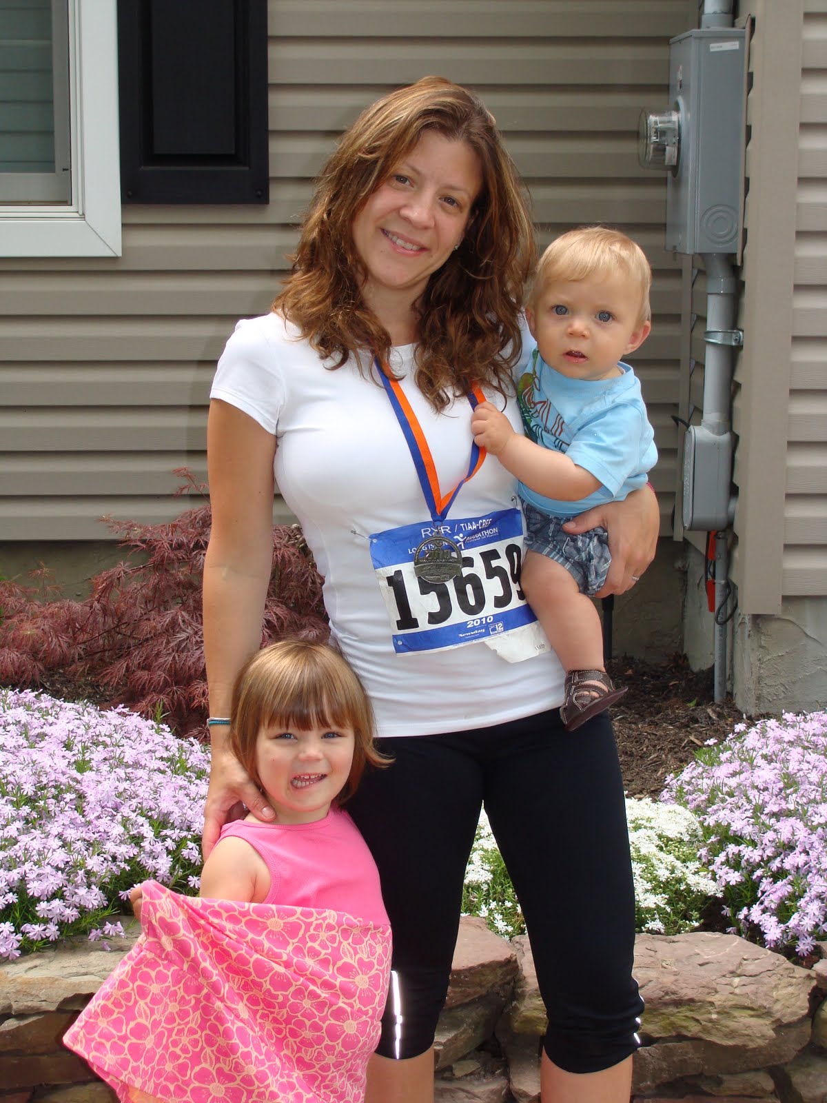 Here are pictures from the first out of two half marathons that I ran in. Those two little ones are my biggest fans. It has to be the most touching and inspirational sound to hear your own child chearing you on and being completely and utterly proud of you. You could hear Brooke a mile away screaming "Go, Mommy, Go"...that's if her father brings her to the right route...(that's a whole different post...).
