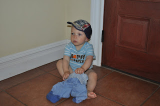 Okay. So I am pretty sure Supernanny would say its not right to take pictures whilst the child is IN the naughty corner...but I couldn't help it. He was so darn cute. Notice the wet pants...he flooded my laundry room from holding down the water lever on the cooler. Today he stuffed THREE kernels of CORN up ONE nostril!!! AND YES..if I could of I WOULD HAVE taken a picture lol...but I was too busy popping them out of his nostril to grab the camera.